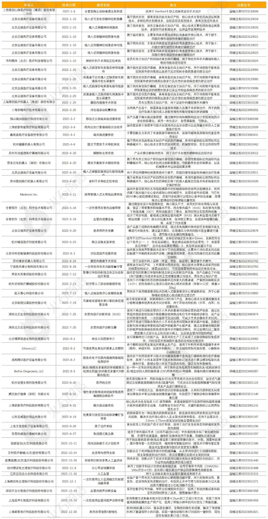 截至2022年底,2022年国家局公示了67个三类医疗器械进入创新审批绿色通道,见表2。相较于2021年的60个略有增加。